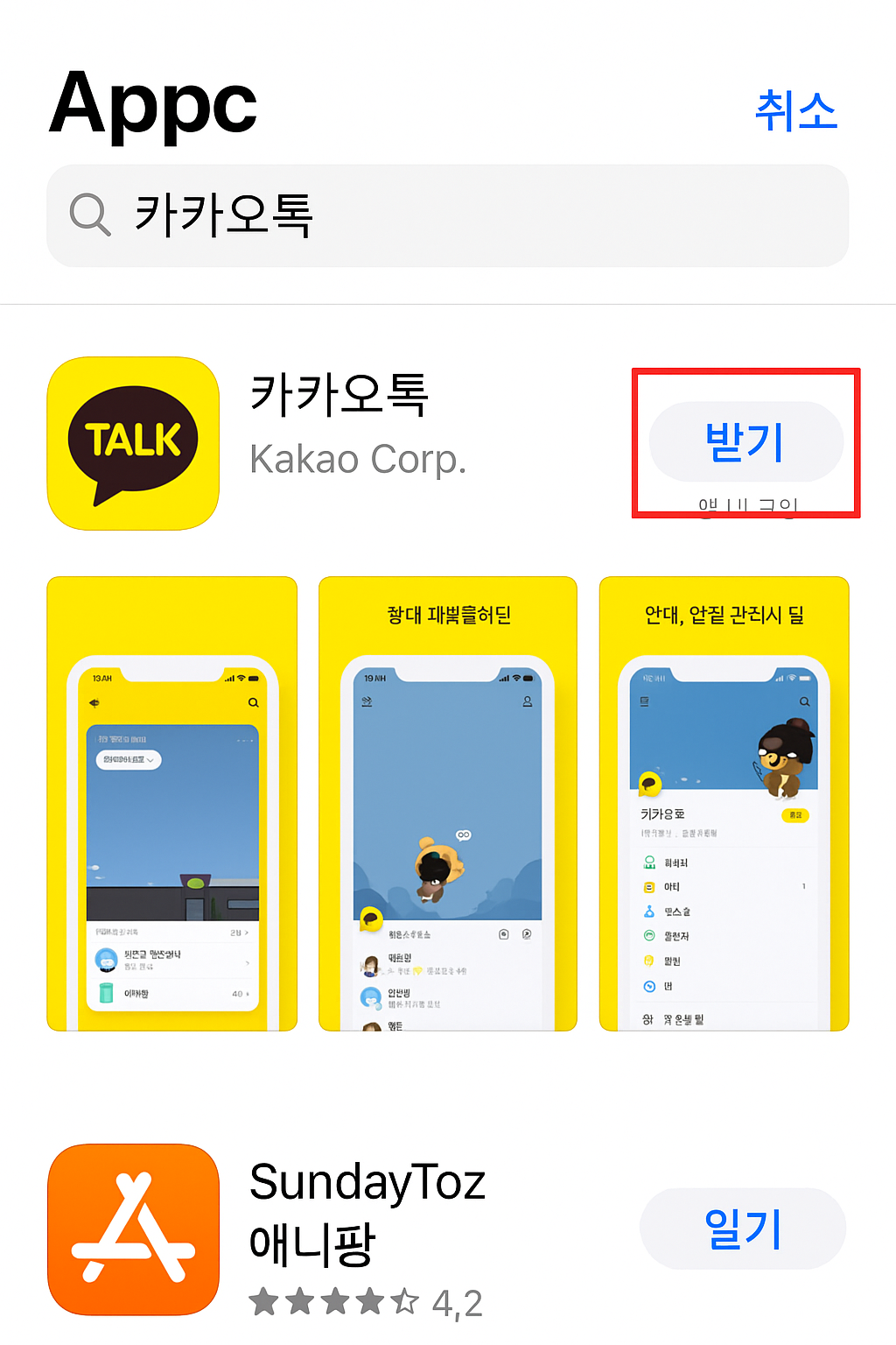 - 앱스토어 검색에 카카오톡을 입력합니다.